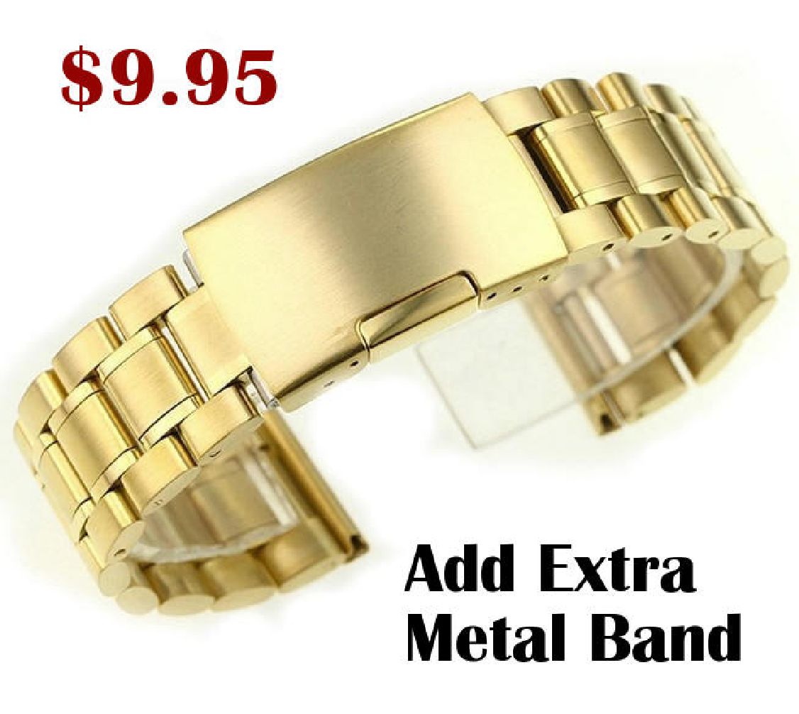 Style: Standard silicone rubber replacement strap with gold tone steel buckle and gold tone bullets