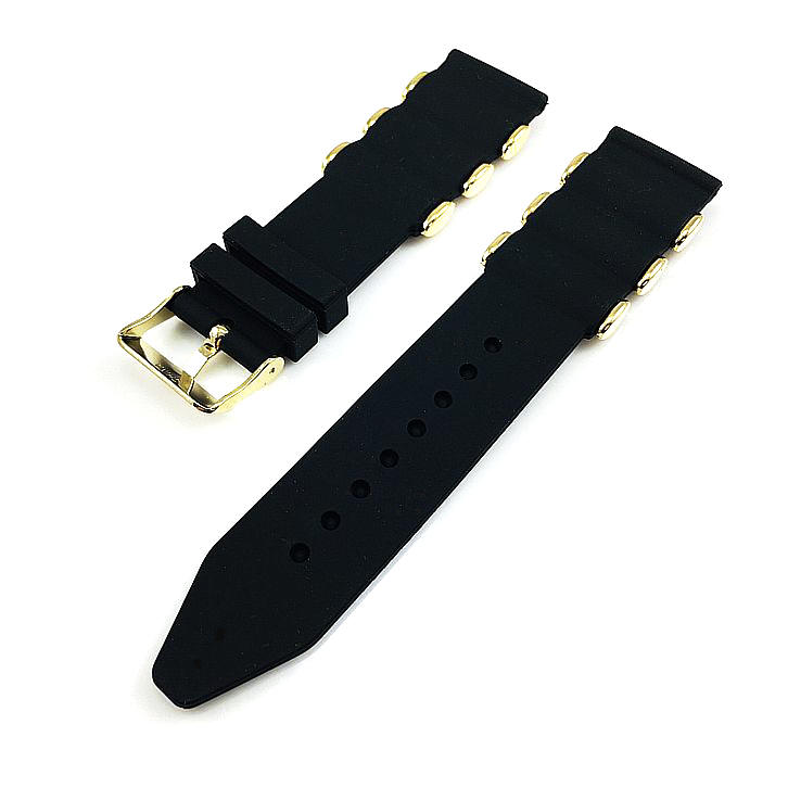 Style: Standard silicone rubber replacement strap with gold tone steel buckle and gold tone bullets