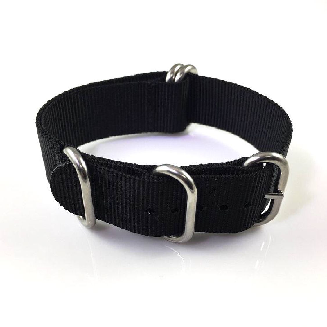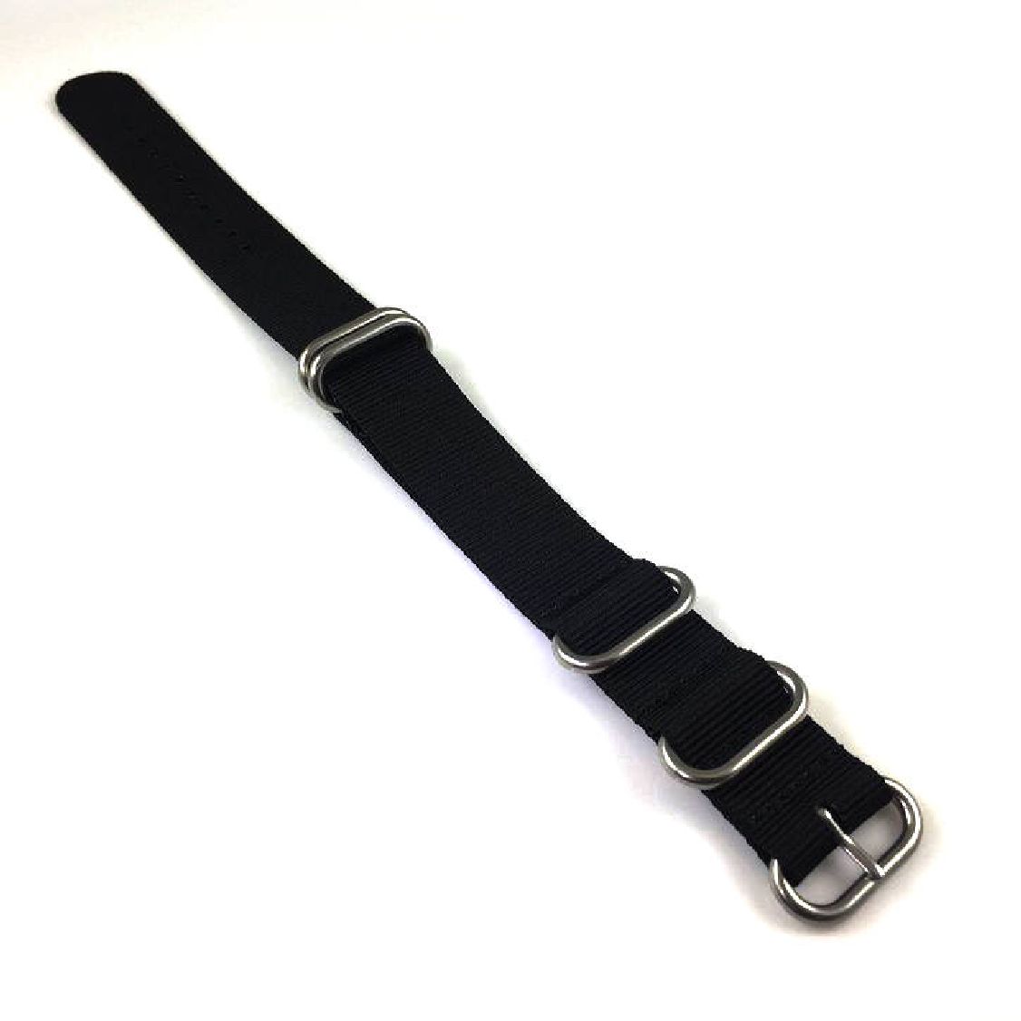 5 Ring Ballistic Army Military Black Nylon Fabric 24mm Watch Band Strap #3013