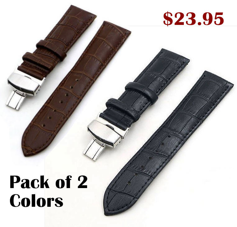 Brown Croco Leather Replacement 18mm Watch Band Strap Butterfly Buckle #1032
