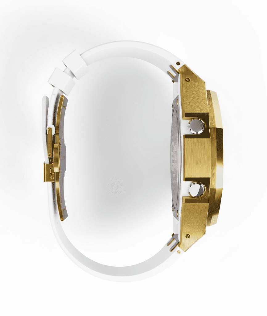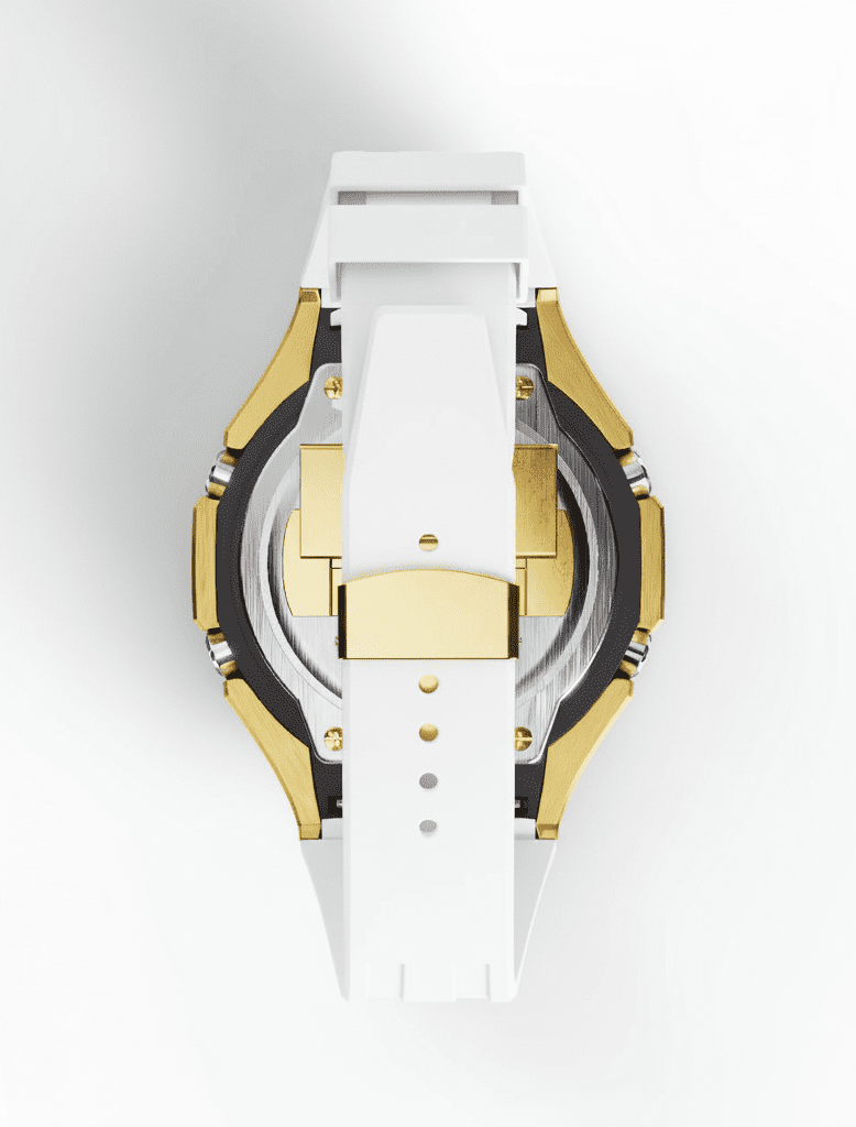 Casioak Mod Custom Watch Casio G-Shock GA-2100 Gold Tone And White Strap GA2100