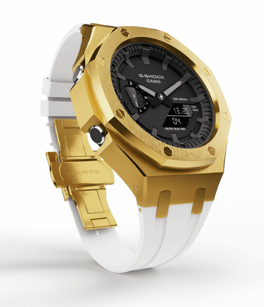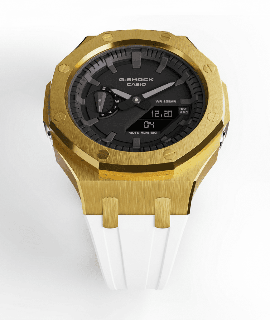 • Casioak Mod Custom Watch Casio G-Shock GA-2100 Gold Tone And White Strap GA2100