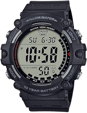 The Casio AE1500WH 1AV is a wide face digital watch built for durability, clarity, and long life. It features a resin case and resin band, a large display that is easy to read, and a full suite of practical functions for everyday wear or travel.