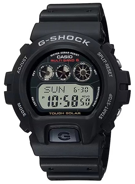 The Casio GW6900 1 is a rugged solar-powered GShock digital watch with 200 meter water resistance and shock resistant construction. Built for durability and reliability, it is ideal for outdoor use, sports, or everyday wear. The resin band and case make it lightweight yet tough, combining GShock resilience with practical timekeeping functions.