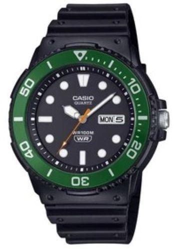 • Casio MRW230H-1E3V Analog Resin Watch Green Bezel 100M Water Resistant