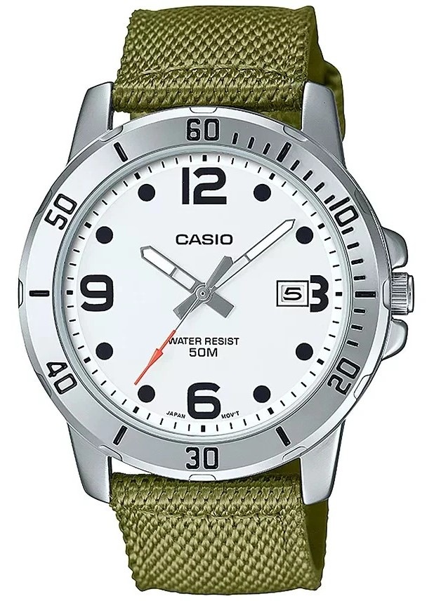• Casio MTPVD01D-3BV Analog Green Dial Stainless Steel Watch 50M Water Resistant