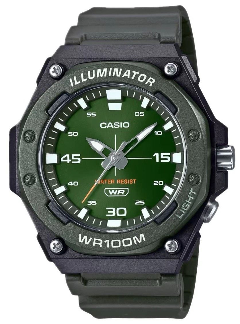 Casio MW620H-3AV Analog Green Dial Resin Watch 100m Water Resistant