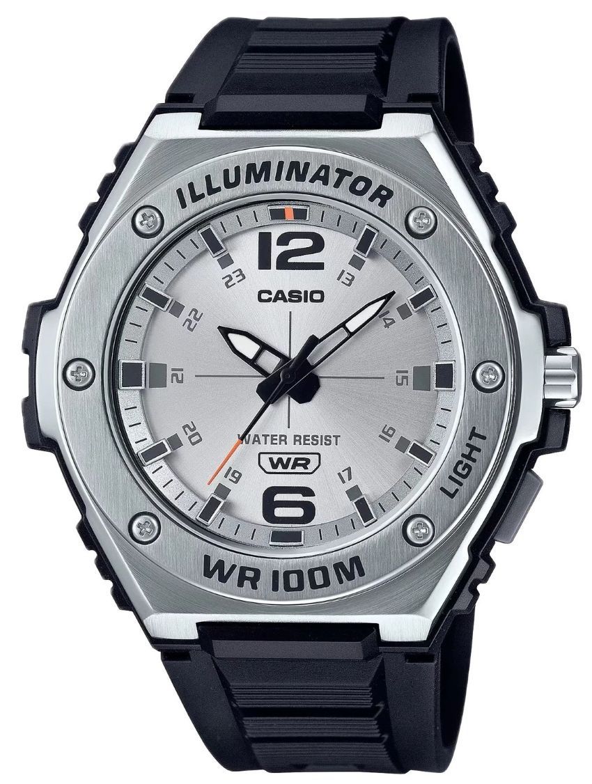 • Casio MWA100H-7AV Analog Silver Dial Resin Band Watch 100m Water Resistant