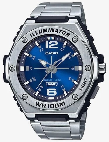 The Casio MWA-100HD-2AV is a sturdy analog watch with a blue dial and stainless steel bracelet, designed for everyday wear with reliable build quality, strong water resistance, and ease of use - a practical choice for daily life or casual outings.