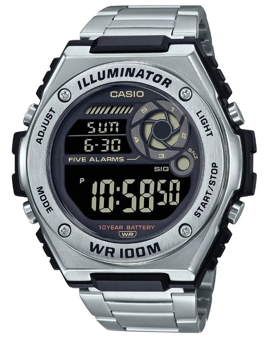 The Casio MWD-100HD-1BV is a rugged digital wristwatch with a stainless steel bracelet and robust resin case - a versatile timepiece designed for everyday use, outdoor activity, or casual wear. With long battery life, water-resistance, and a full set of digital functions, it's built to stay reliable under real-world conditions.