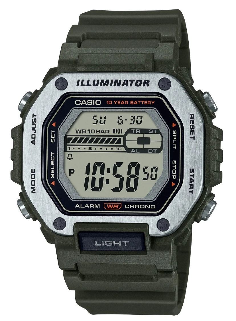 • Casio MWD110H-3AV Digital Green Resin Watch 100M Water Resistant 10-Year Battery