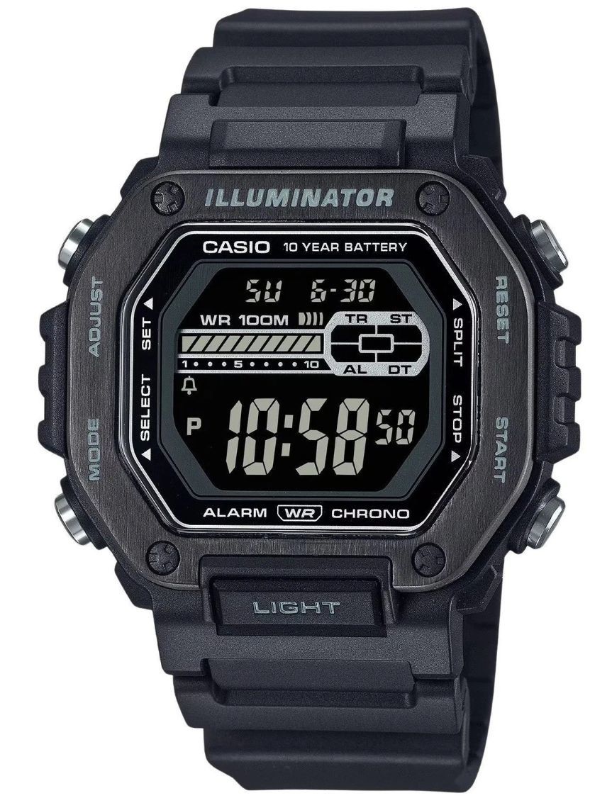 The Casio MWD-110HB-1BV is a rugged digital watch built for reliability and everyday function - combining a resin case, stainless steel bezel, 100-meter water resistance and a long-life 10-year battery. Its bold design and packed set of features make it a practical choice for daily wear, sports, or outdoor use.