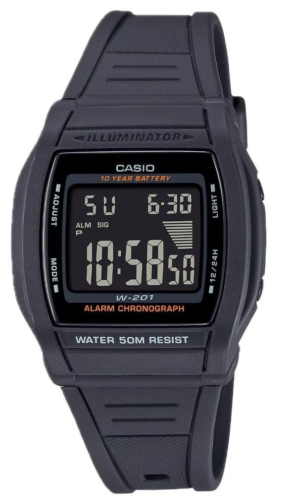 • Casio W201-1BV Digital Black Resin Watch 10-Year Battery 50m Water Resistant