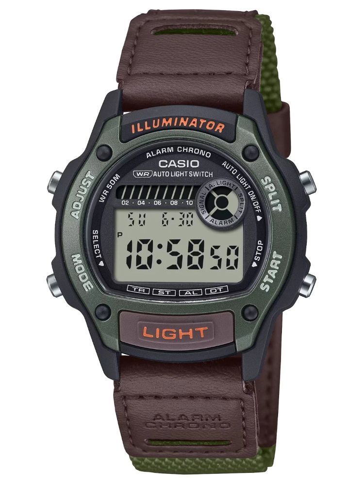 Casio W220HF-3AV Digital Watch 50M Water Resistant Resin Case Leather-Cloth Band LED Stopwatch Alarm