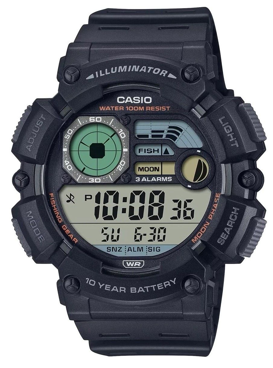 • Casio WS1500H-1AV Digital Watch 100M Water Resistant Moon Phase Fishing Gear Dual Time LED