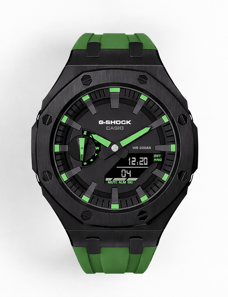 Casioak Mod Watch Casio G-Shock GA-2100 Black Case Green Strap Modded GA2100-1A3