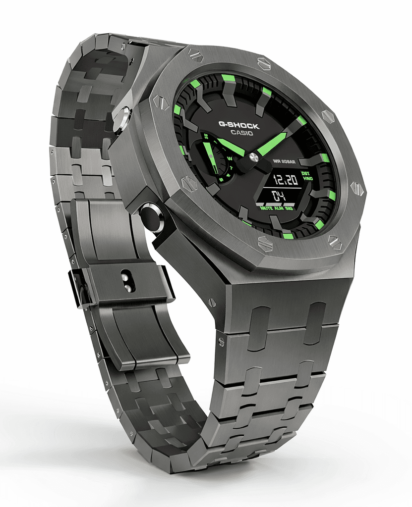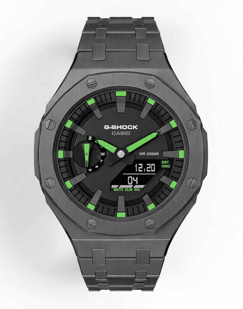 Casioak Mod Watch Casio G-Shock GA-2100 Gunmetal Grey Case Band Modded Green GA2100-1A3