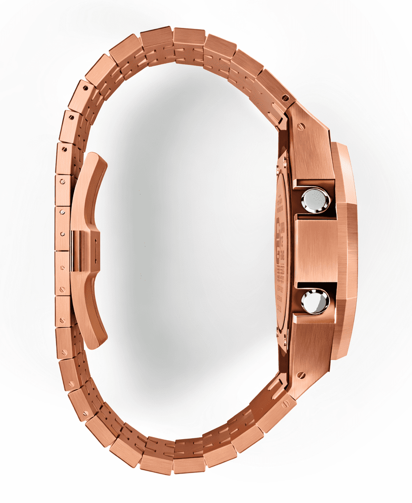 • Rose gold plated stainless steel case.