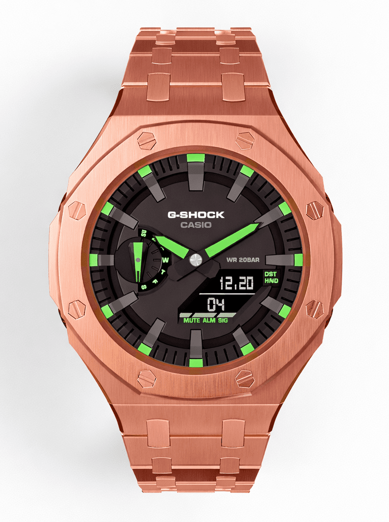 • Casioak Mod Watch Casio G-Shock GA-2100 Rose Gold All Metal Watch Green GA2100-1A3