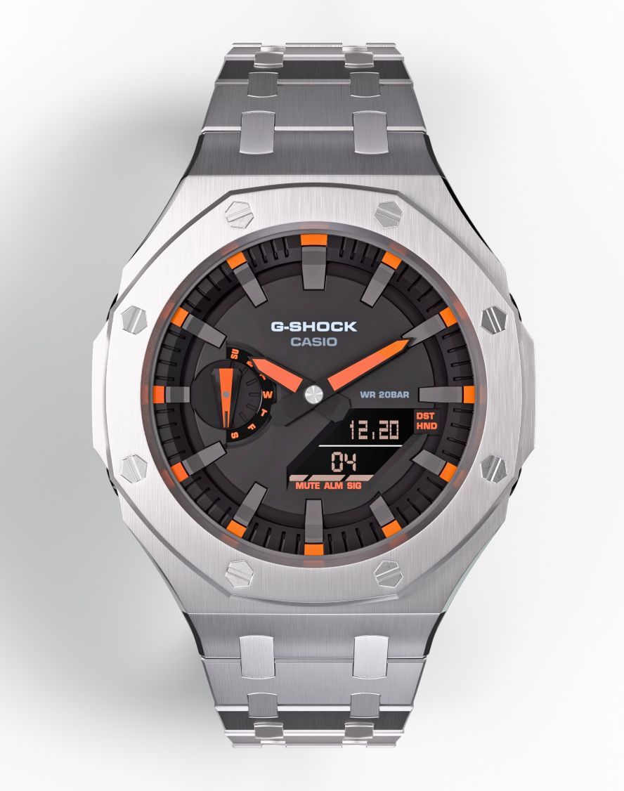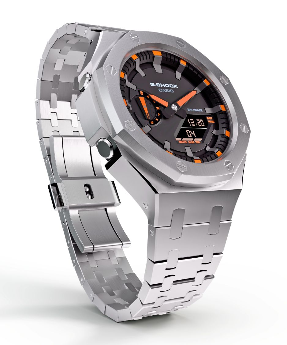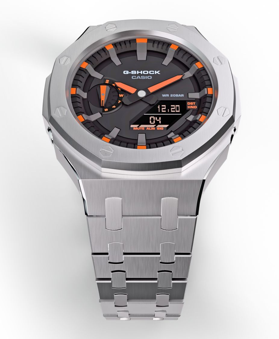• Casioak Casio G-Shock GA-2100-1A4 MOD custom steel watch collection.