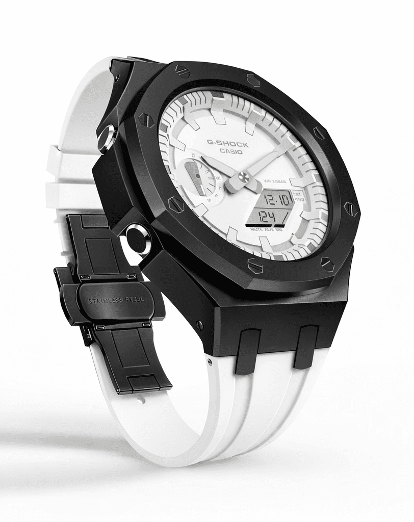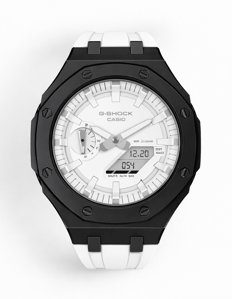 • Casioak Mod Watch Casio G-Shock GA-2100-7A7 White Dial Black Case White Strap Modded GA2100