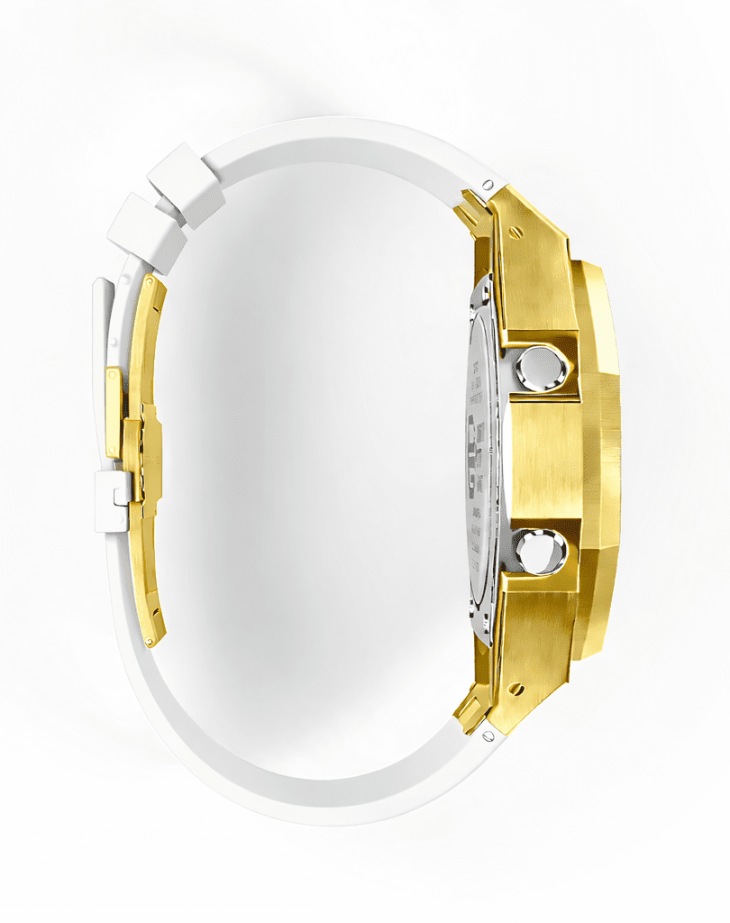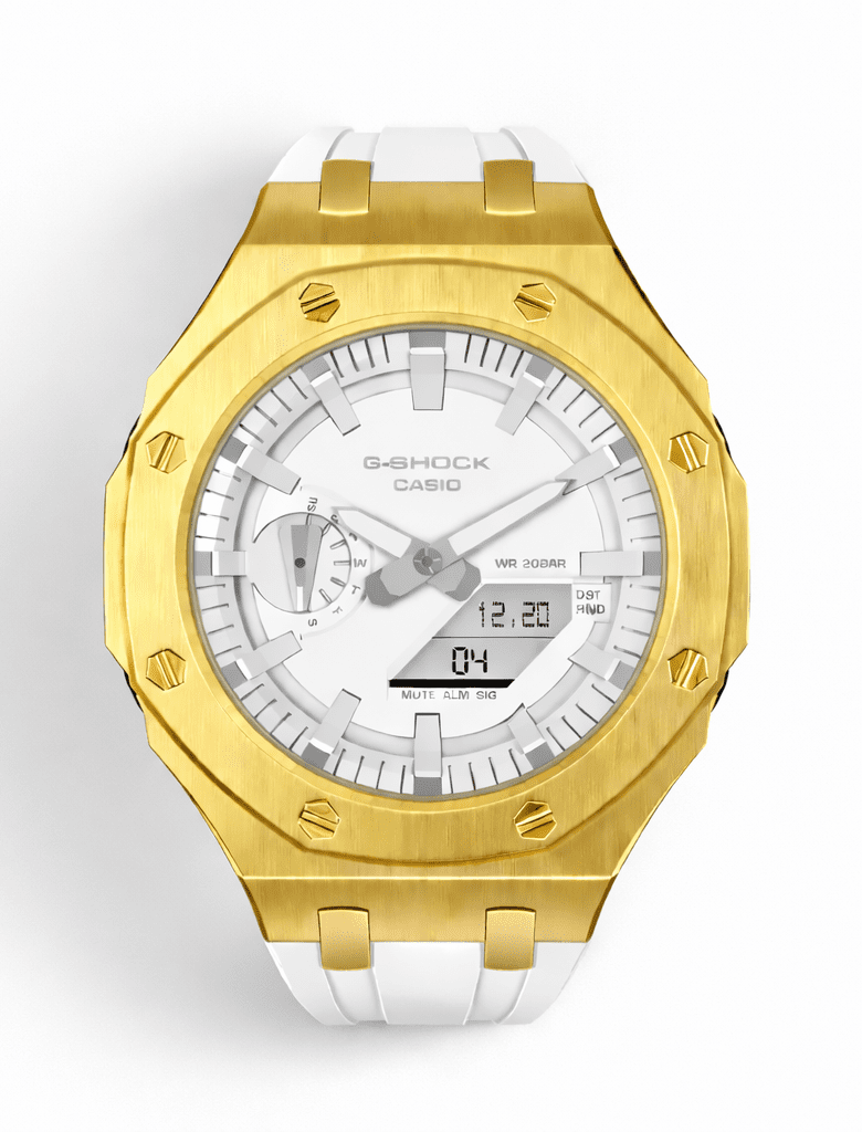 • Casioak Mod Watch Casio G-Shock GA-2100-7A7 White Dial Gold Tone Case White Strap GA2100