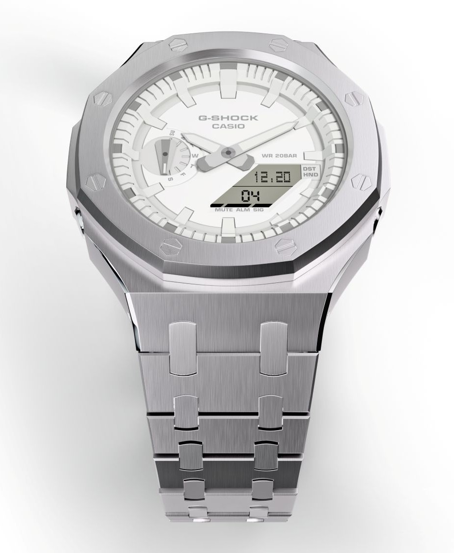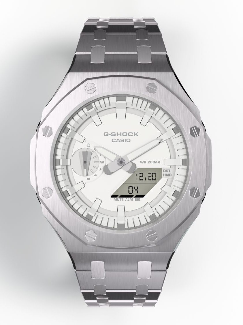 • Casioak Mod Metal Watch Casio G-Shock GA-2100-7A7 White Dial All Steel Case Band GA2100