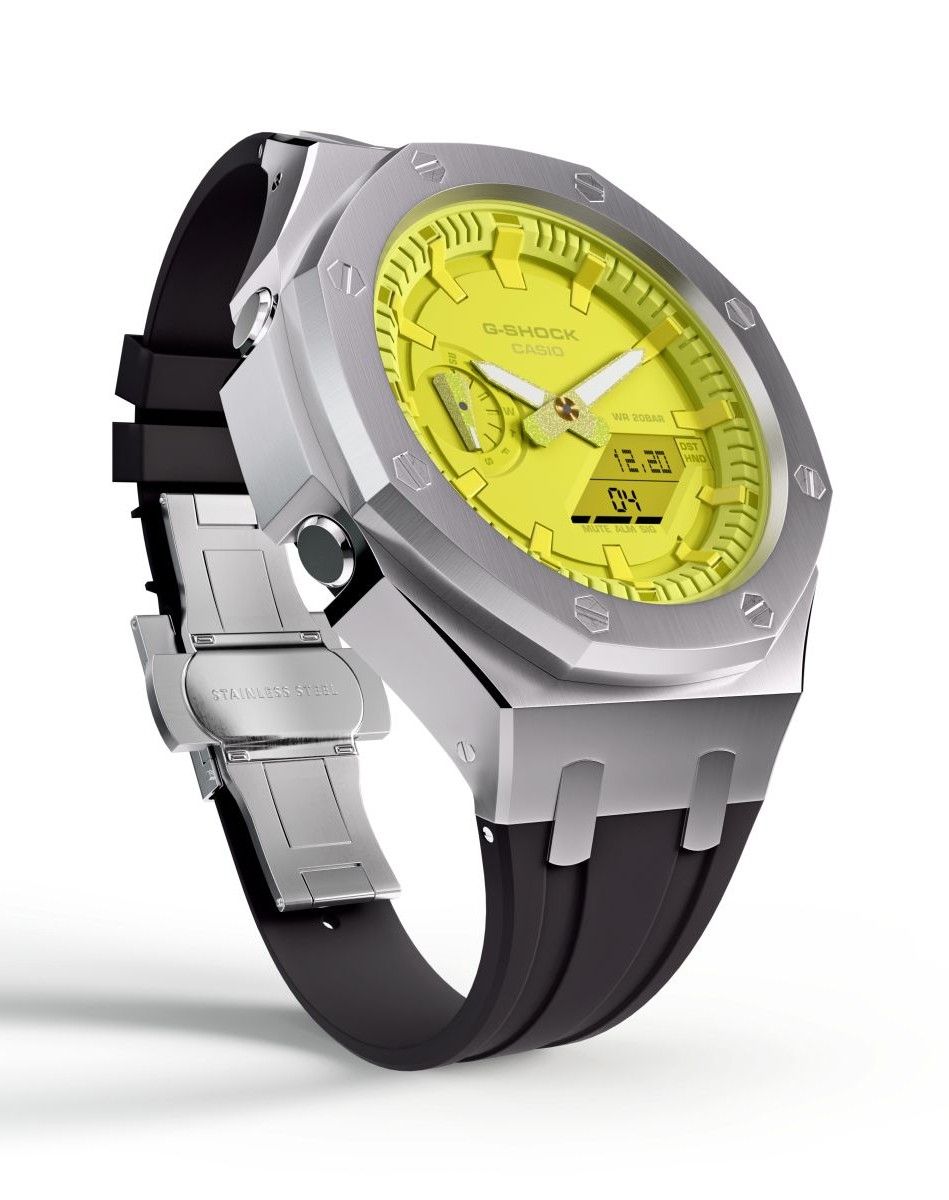 • Casioak Casio G-Shock GA-2100-9A9 MOD custom steel watch collection.