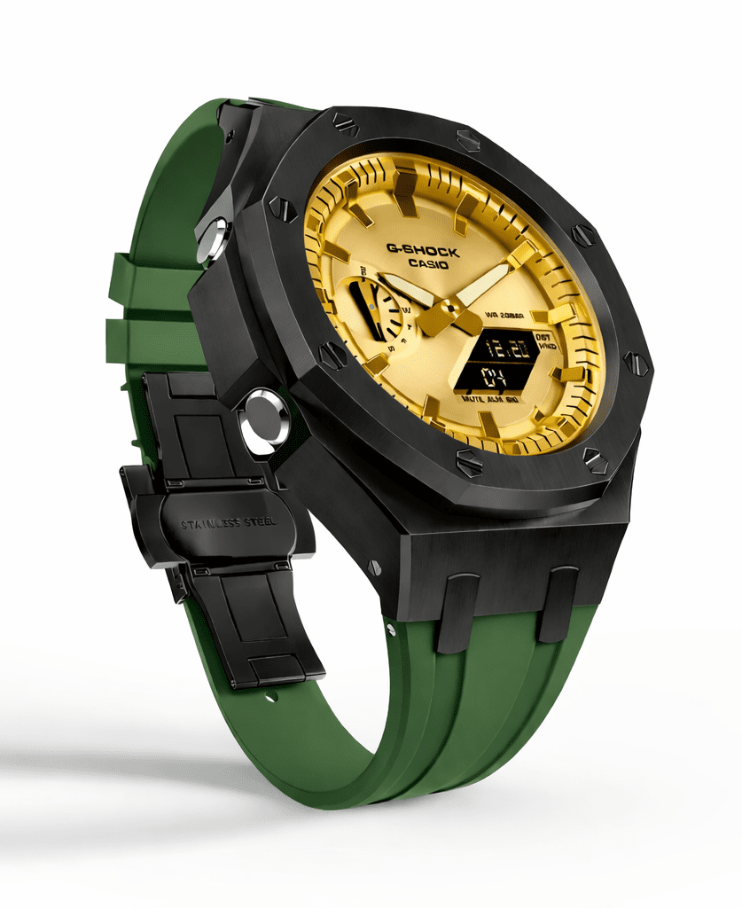 Casioak Mod Watch Casio G-Shock GA-2100 Black Case Green Strap Modded GA2100GB-1A