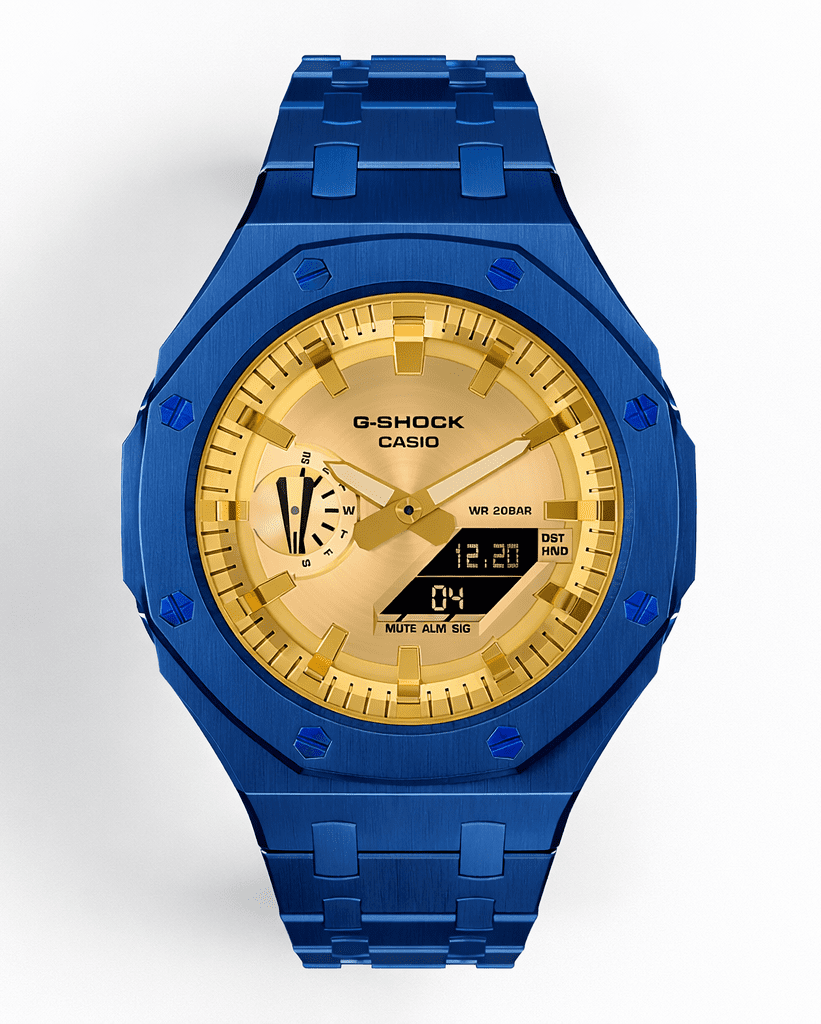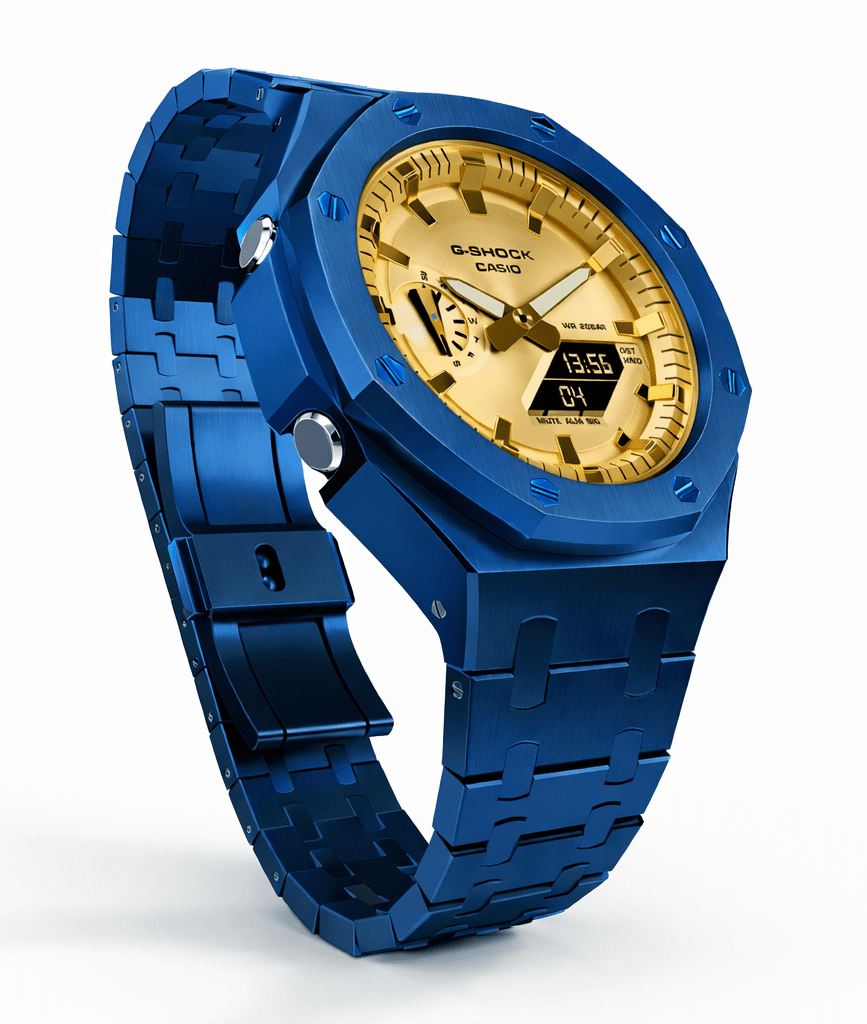 Casioak Mod Watch Casio G-Shock GA-2100 Blue Case Metal Strap Modded GA2100GB-1A