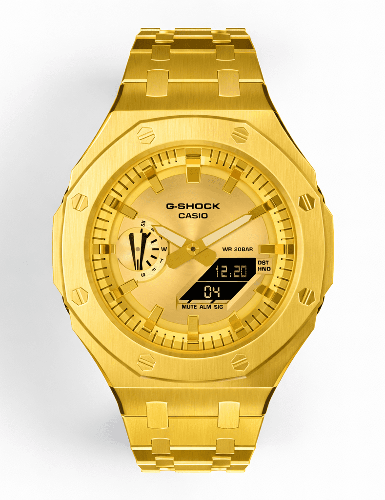 • Casioak Mod Watch Casio G-Shock GA-2100 Gold Tone All Metal Steel GA2100GB-1A
