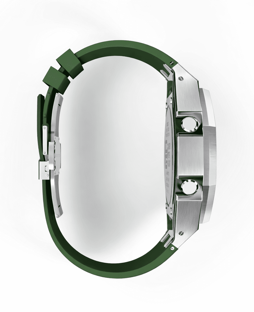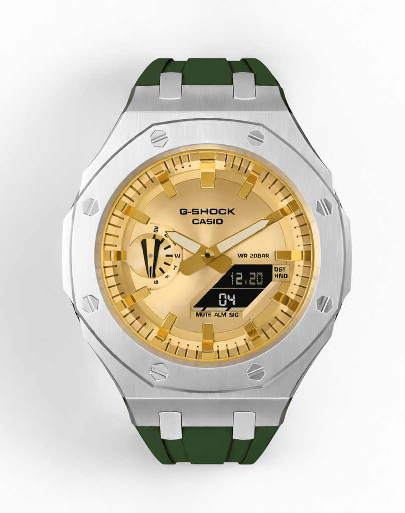 Casioak Mod Watch Casio G-Shock GA-2100 Silver Case Green Strap Modded GA2100GB-1A