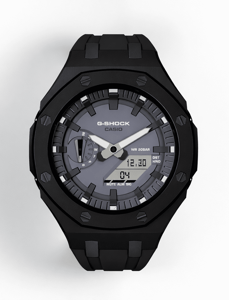 • Casioak Mod Watch Casio G-Shock GA-2100 Black Metal Case Strap Grey Dial Modded GA2110ET-8A