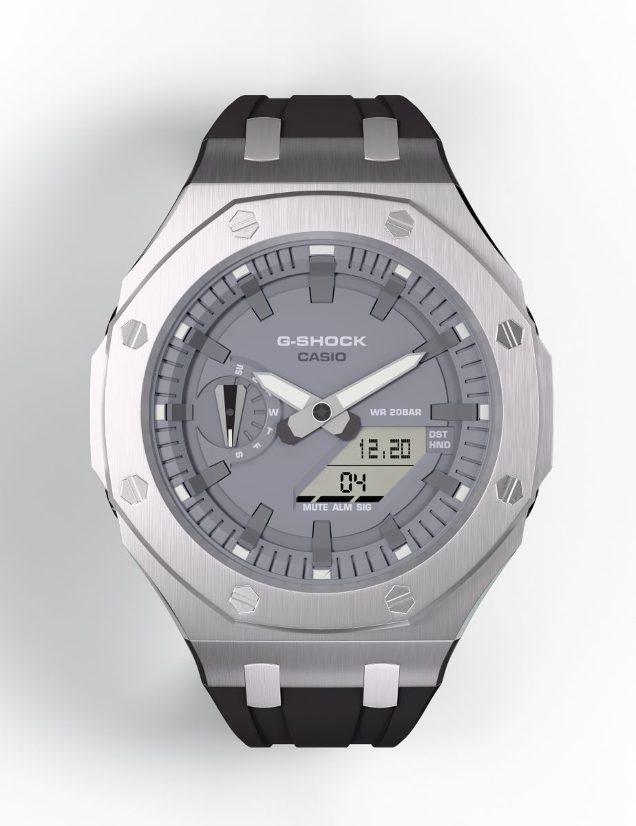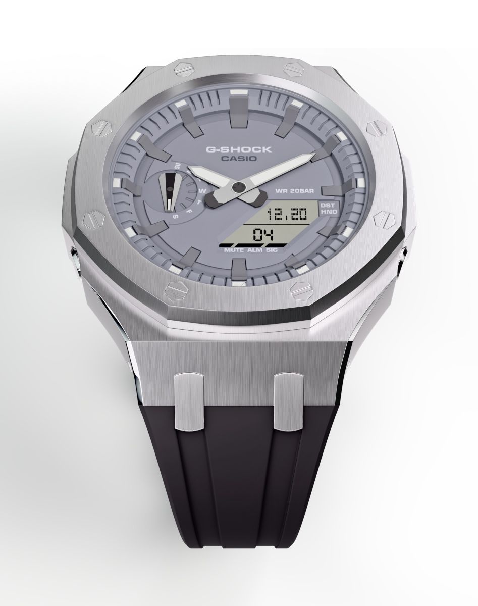 • Casioak Mod Watch Casio G-Shock GA-2100 Silver Metal Case Grey Dial Black Strap GA2110ET-8A