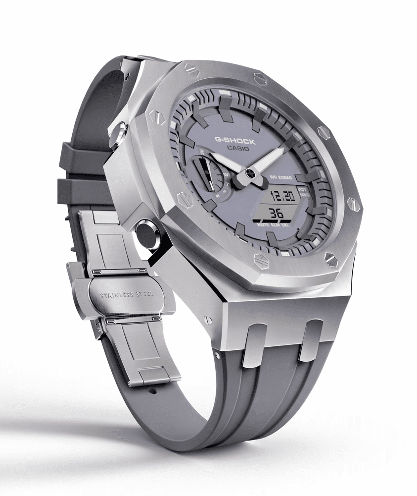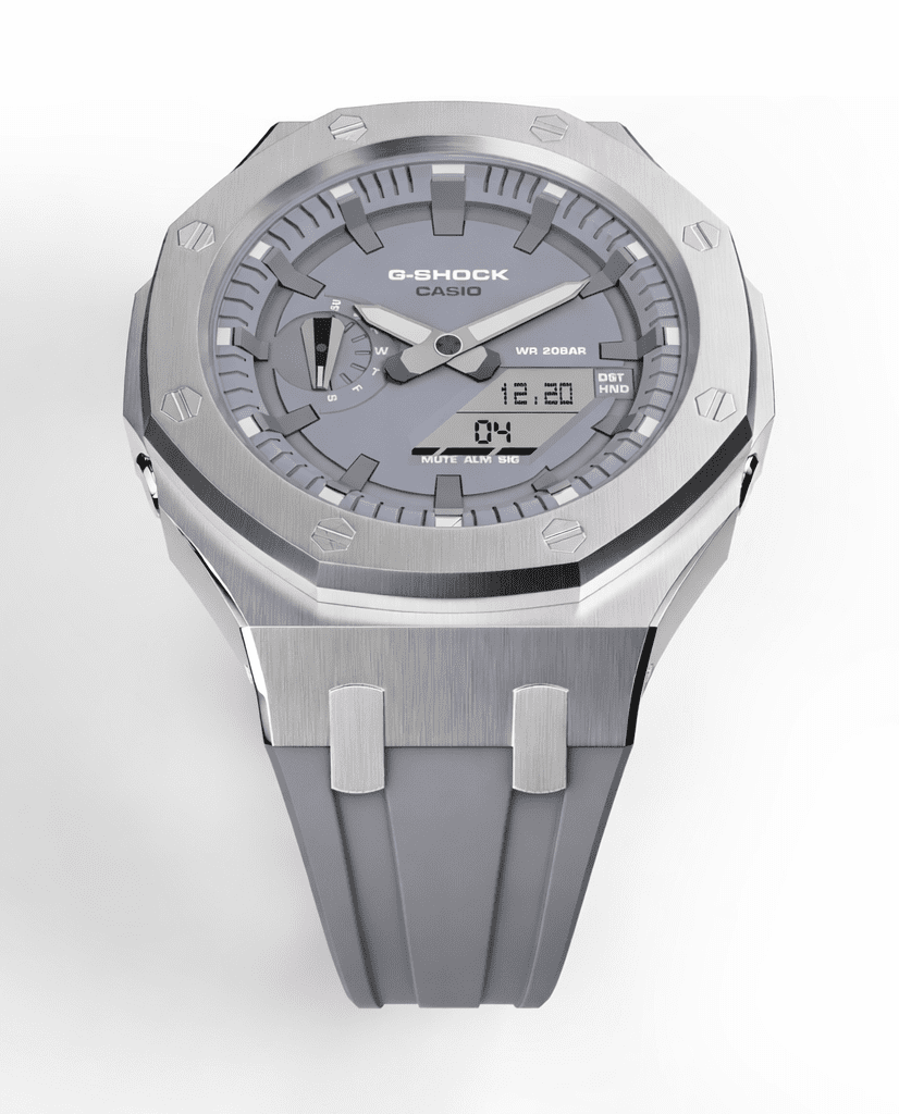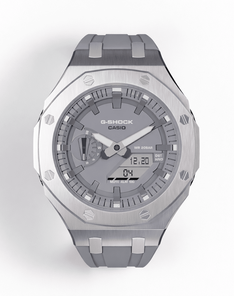 • Casioak Mod Watch Casio G-Shock GA-2100 Silver Metal Case Grey Dial and Strap GA2110ET-8A