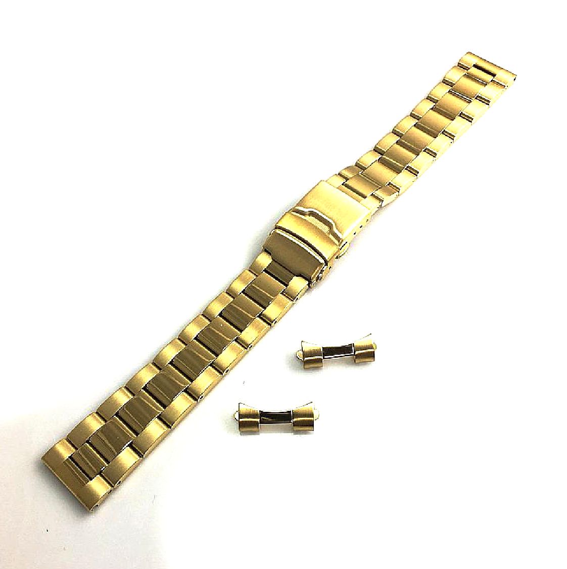 Gold Tone Brushed Metal Steel Curved End Replacement Watch Band #7008