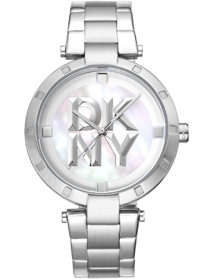 • Women's DKNY Essential Logo Mother of Pearl Dial Stainless Steel Watch DK1L041M0045