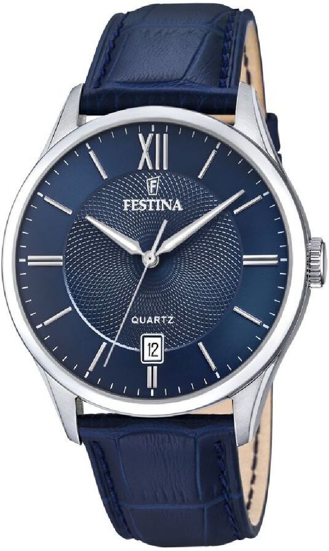 • Men's Festina Acero Clasico Blue Leather Strap Watch F20426-2