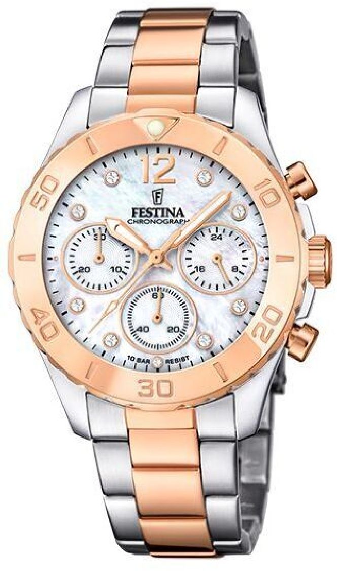 • Women's Festina Boyfriend Chronograph Mother of Pearl Crystalized Dial Watch F20605-1