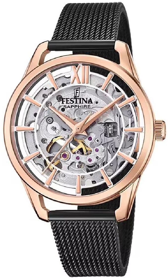• Women's Festina Automatic Stainless Steel Skeleton Dial Watch F20628-3