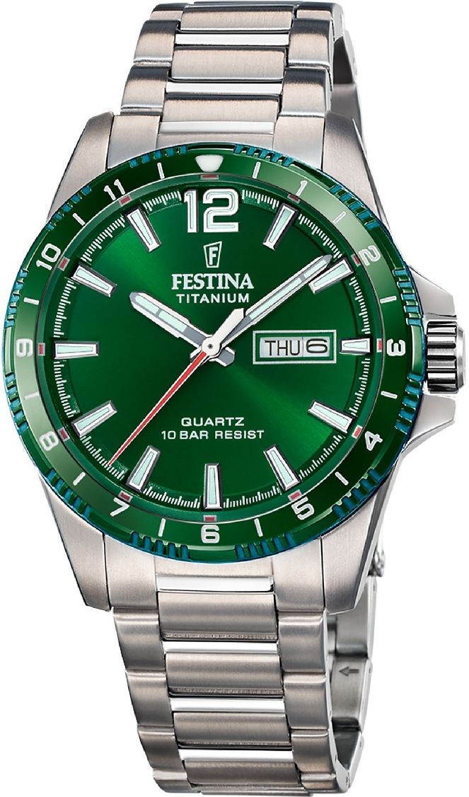 • Men's Festina Calendario Titanium Green Dial Watch F20698-3
