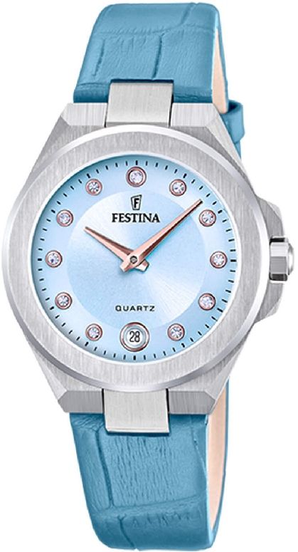 Women's Festina Mademoiselle Leather Strap Crystalized Dial Watch F20701-3
