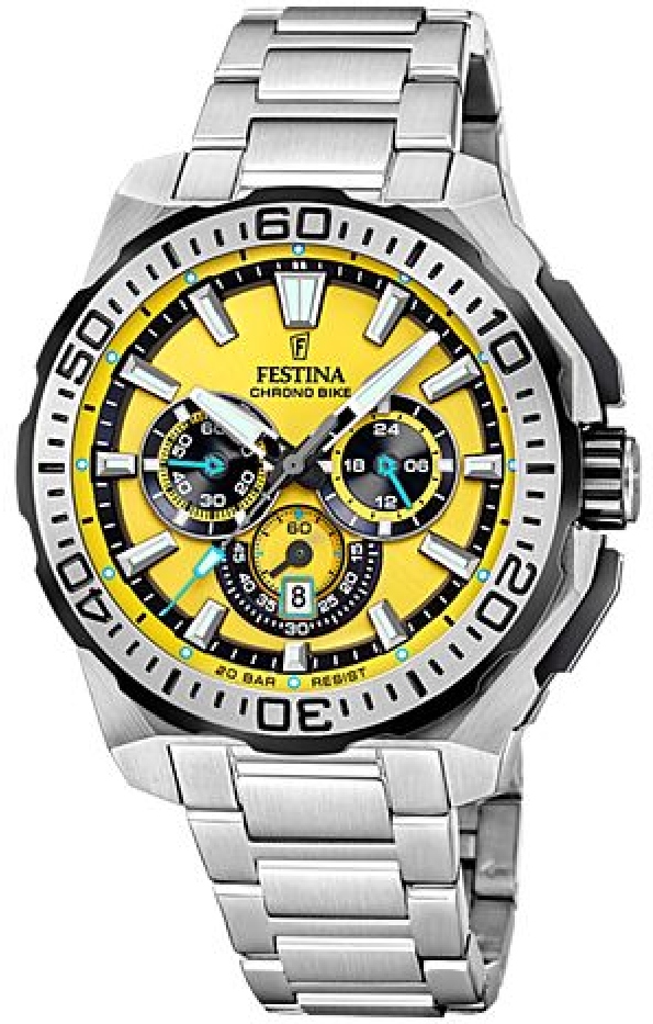 • Men's Festina Chrono Bike Chronograph Stainless Steel Yellow Dial Watch F20724-4