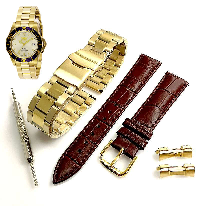 Pack of 2 Steel and Leather Gold Replacement Watch Band Invicta Pro Diver 9743