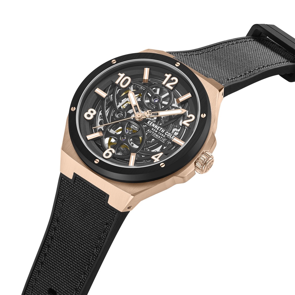 • Men's Kenneth Cole Automatic Silicone Strap Skeleton Dial Watch KCWGZ0089201