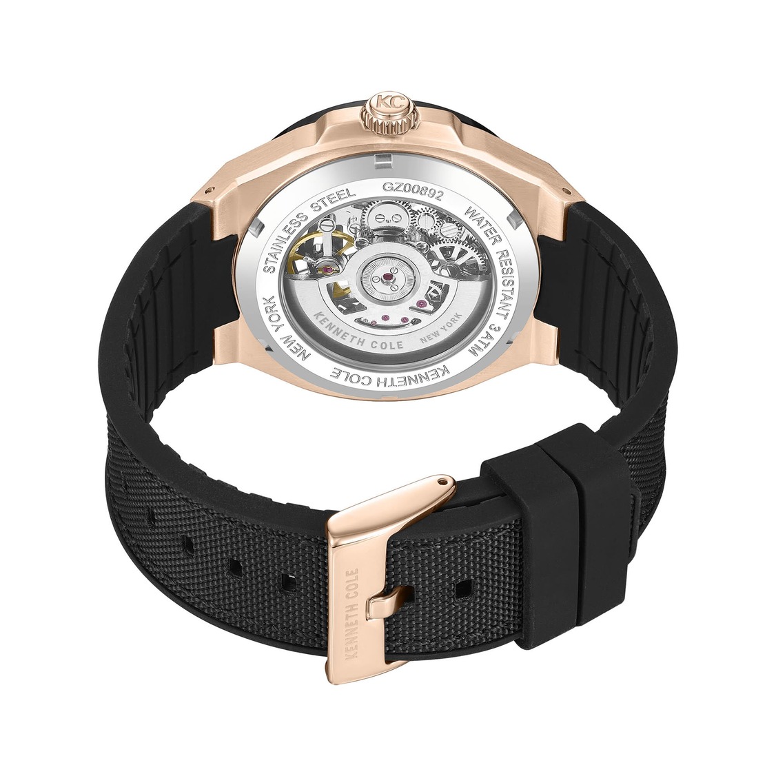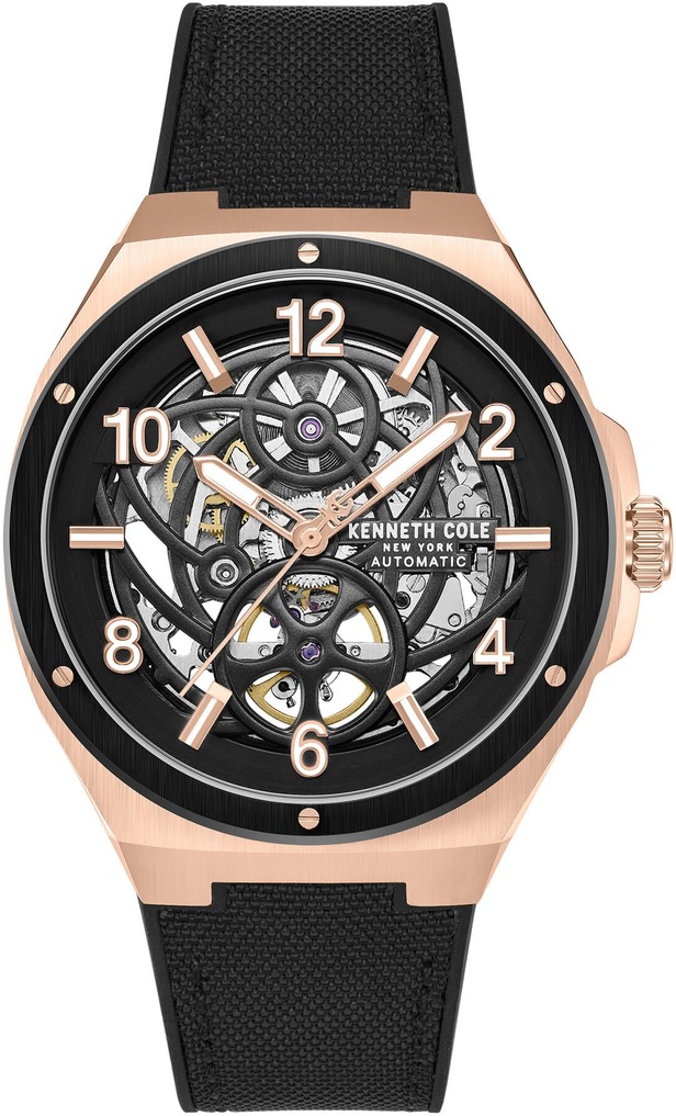 Men's Kenneth Cole Automatic Silicone Strap Skeleton Dial Watch KCWGZ0089201
