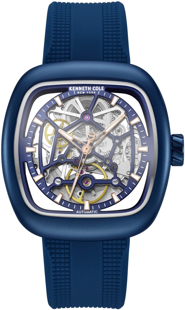 Men's Kenneth Cole Automatic Silicone Strap Skeleton Dial Watch KCWGZ0089503