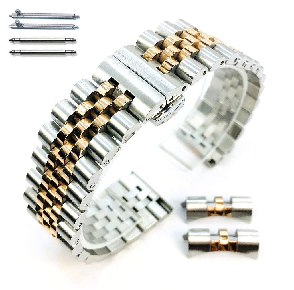 Montblanc Compatible Two Tone Rose Gold Metal Steel Jubilee Style Replacement Quick Release and Curved End Watch Band #7036