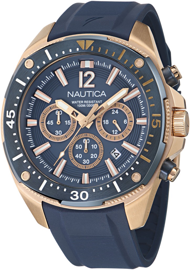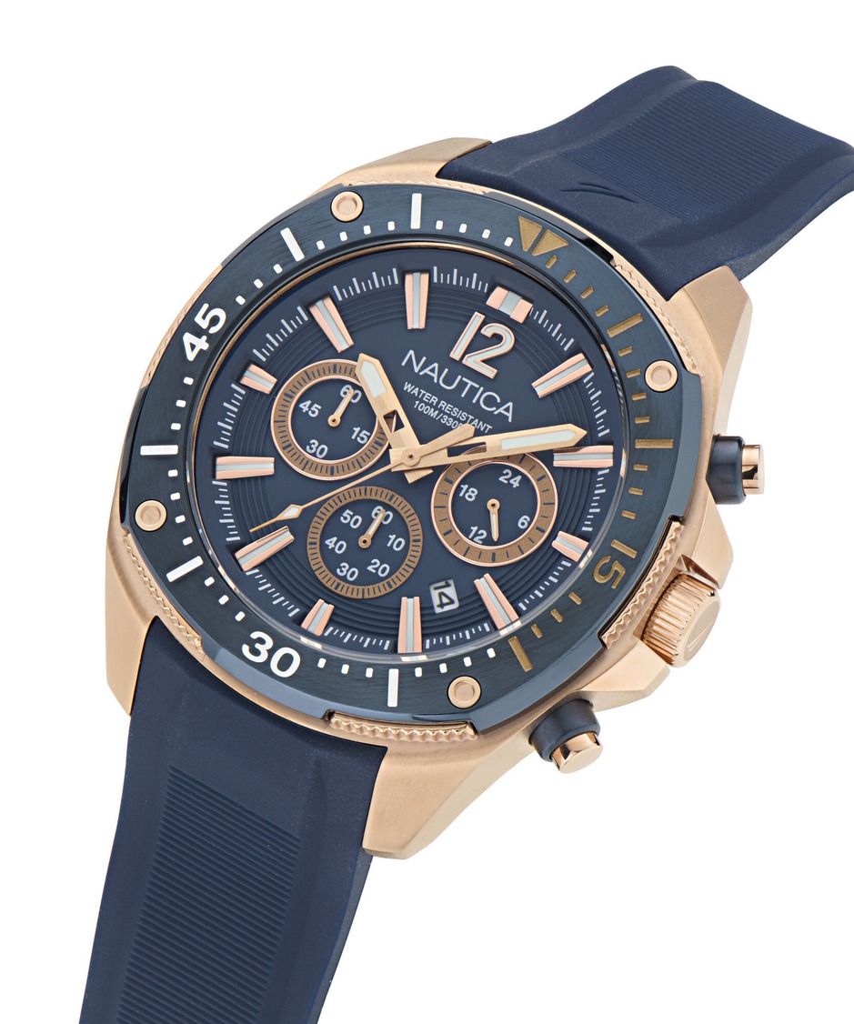 • Men's Nautica Sporty Blue Sail Chronograph Silicone Strap Watch NAPBSS503