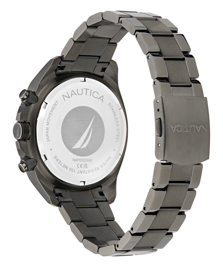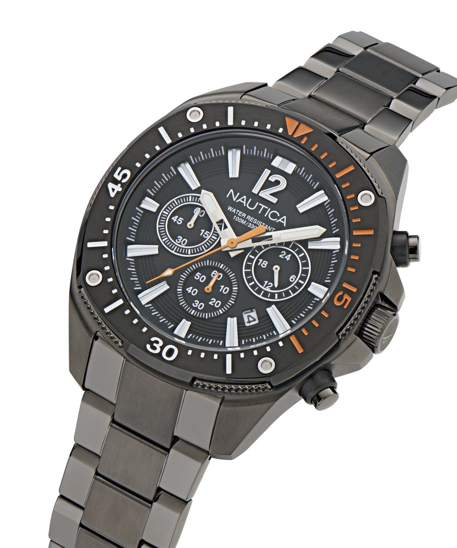 Men's Nautica Sporty Blue Sail Chronograph Black Stainless Steel Watch NAPBSS506